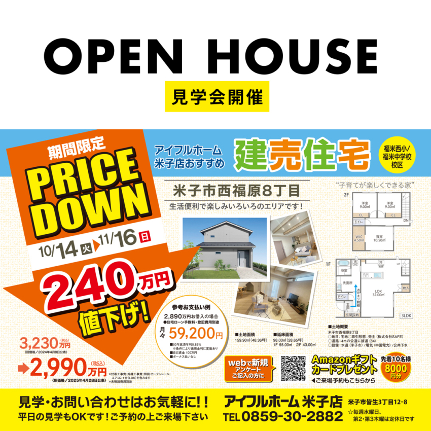 【要予約】集合場所:米子市西福原8丁目 建売住宅