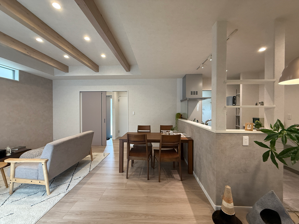 ✦キッチンはLIXILの最上位グレード『リシェル』を採用 セラミックトップは、熱、キズ、汚れに強いだけでなく リビング空間に上質なインテリアとしての魅力をつくりあげています