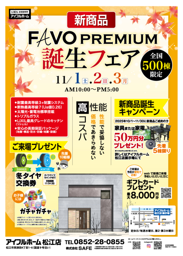 詳しくは、アイフルホーム松江店展示場にて