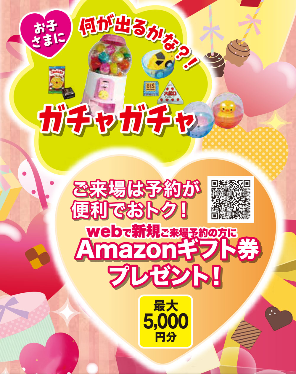 お子様には「お菓子つかみ取り」や「ガチャガチャ」も!