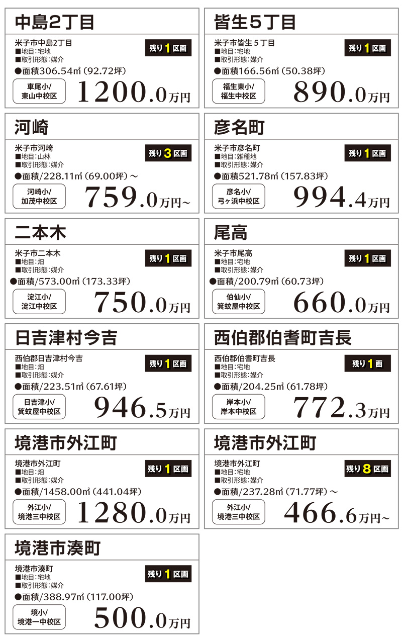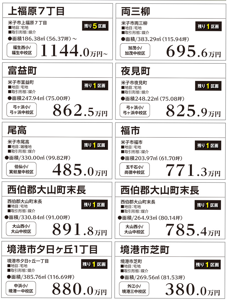 米子市/境港市/西伯郡/日吉津村などの土地情報があります!