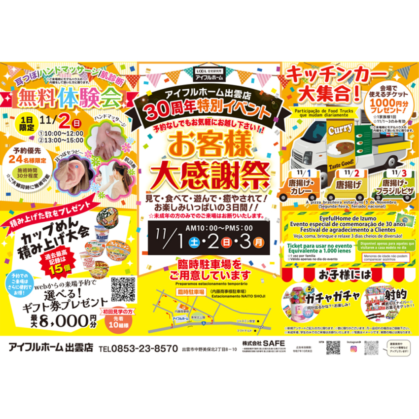 11/1.2.3【アイフルホーム出雲店】お客様大感謝祭 ~30周年特別イベント~