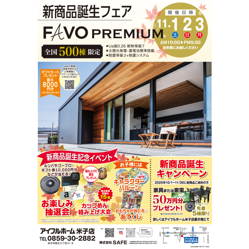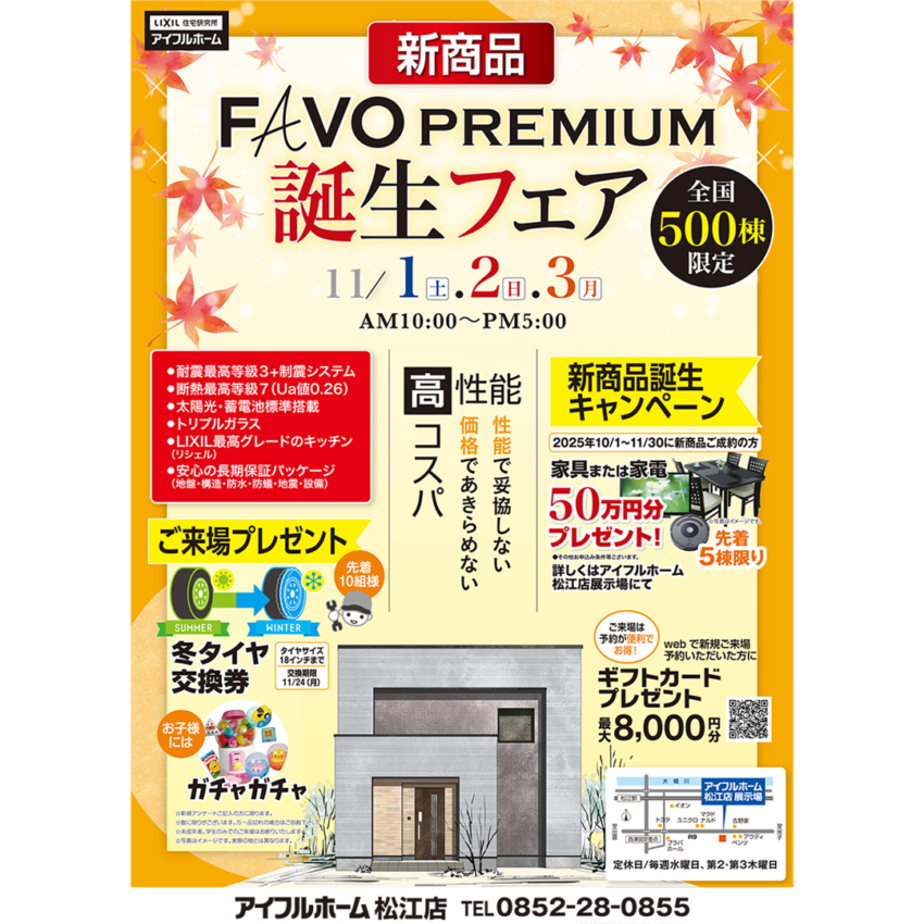 11/1.2.3【米子店】新商品誕生フェア FAVO PREMIUM <全国500棟限定>