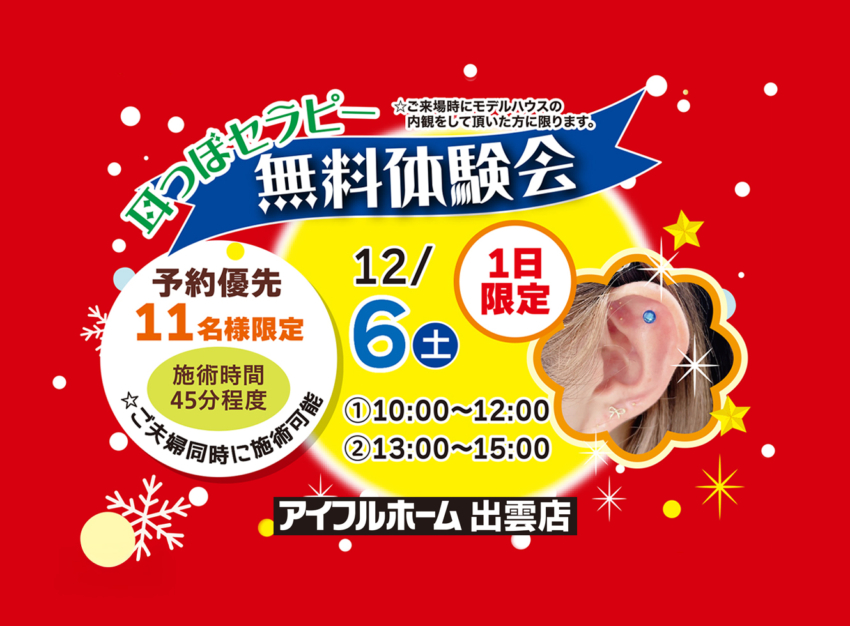 12/6【出雲店】耳つぼセラピー『無料体験会』 クリスマスフェア