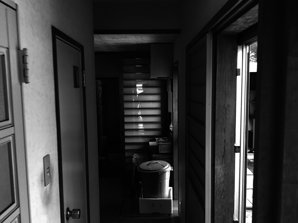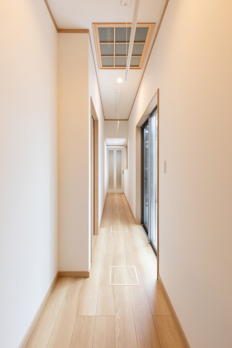 家族のみが利用する廊下にも、洗濯物干しの昇降式のホスクリーンを設けました。