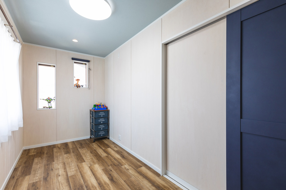 床・扉・壁、内装は男の子の好みからイメージし、北欧系の空間にしました。