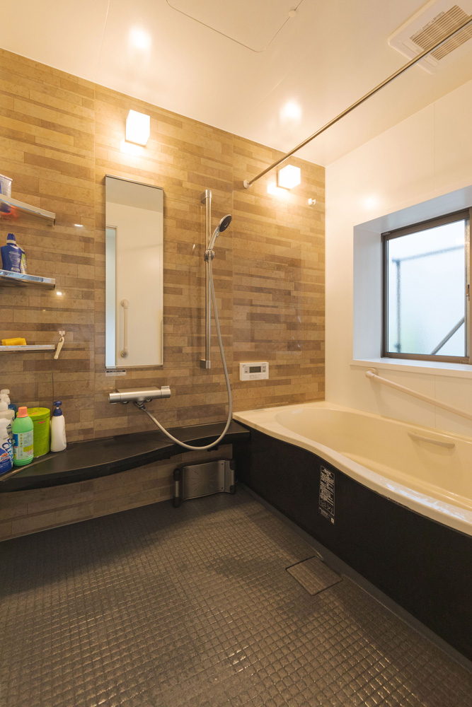 将来的に介護のことも配慮し、大きなお風呂を設置しました。大きな椅子を置いても可動域に十分な広さが確保されています。