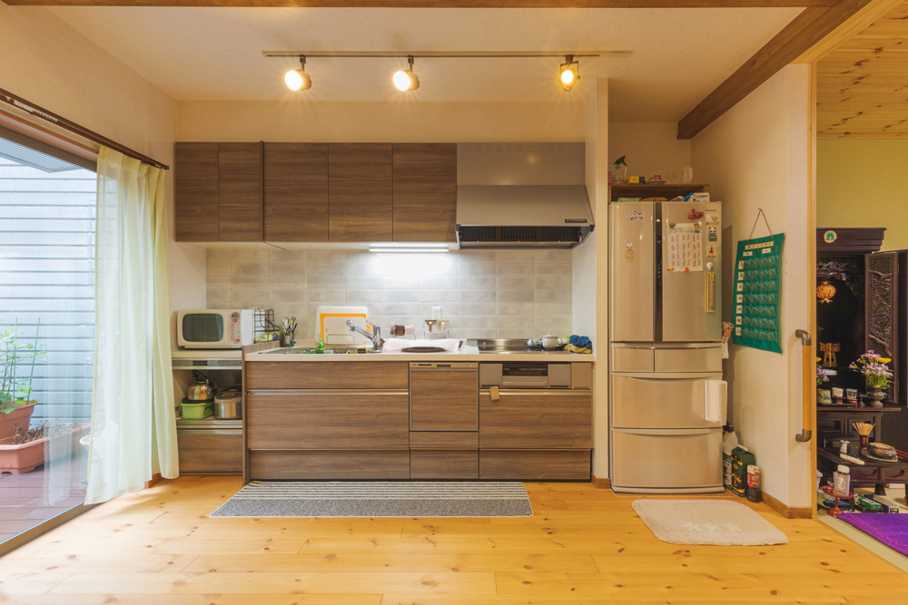田舎でお母さんが気に入っておられた掘りごたつを、今回のリフォームに採用しました。お母さんが畳コーナーで安心して温もっていただけるようにしました。