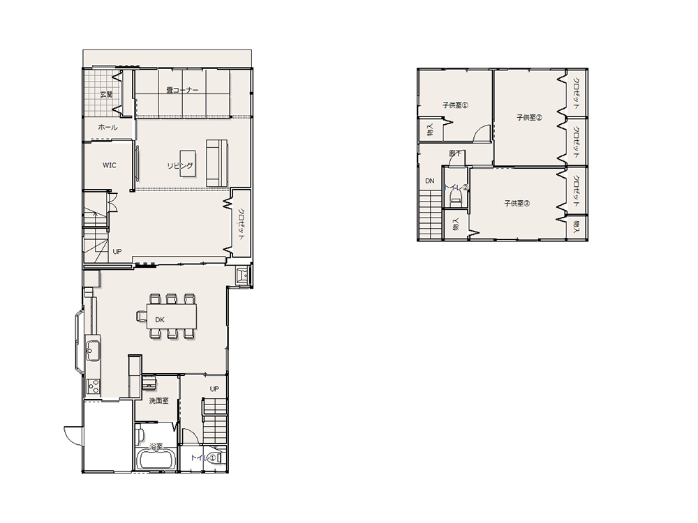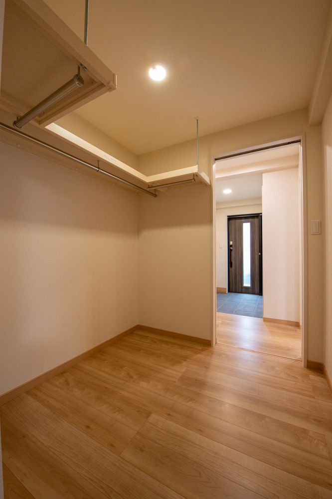 玄関とリビングとの間に、ファミリークローゼットを設けました。