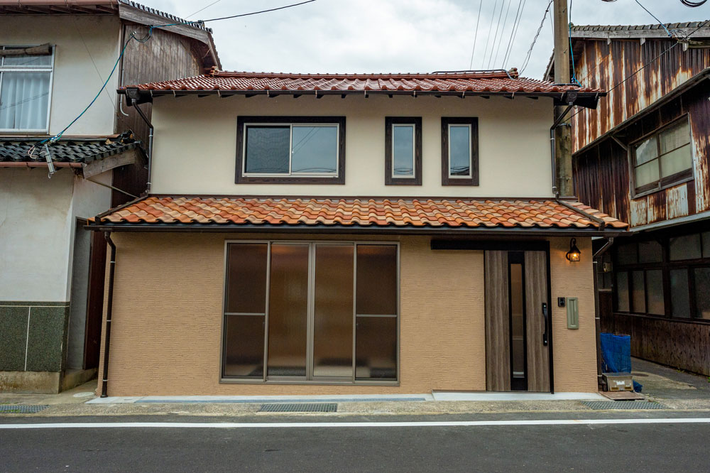 赤瓦の街並みにあうよう、既存の赤瓦を生かして、混ぜ葺き瓦のアンティーク風な外観としました。